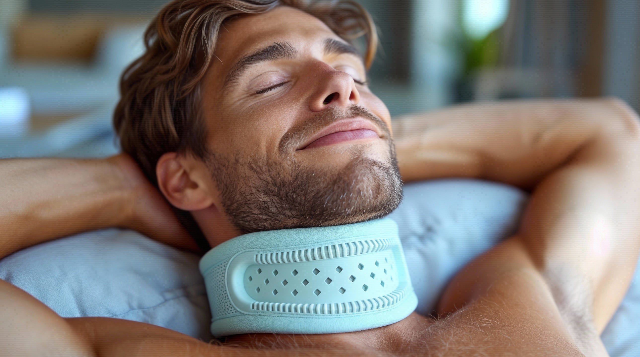 Gefertigt aus hautfreundlichem, atmungsaktivem Material passt sich MundFix Ihrem Nacken ergonomisch an. Selbst bei längerem Tragen bleibt der Komfort erhalten – für ruhige, entspannte Nächte. -